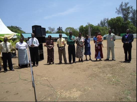 Some of the pioneering members of Nyali Sabbath school being prayed for during inauguration